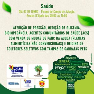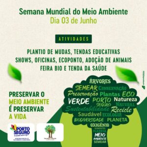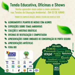 🌳 Em comemoração a Semana Mundial do Meio Ambiente, a Secretaria Municipal do Meio Ambiente e da Causa Animal junto à Associação Verdejar d’Ajuda realizarão evento ambiental em Arraial d’Ajuda no dia 03 de junho, SEXTA-FEIRA!